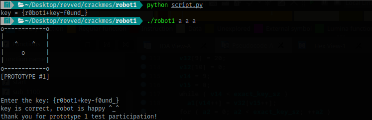 It asks for a key then. If you take a look at the decompiled code before this image, you’ll see that the program’s taking input from user and calculating exact key size it’s expecting and comparing it with the input size. After that you’ll basically see it initialize two arrays with some values. In the end these values are used to check whether the input that user gave is correct or not. The values in these two arrays are xorred element by element to get the key.