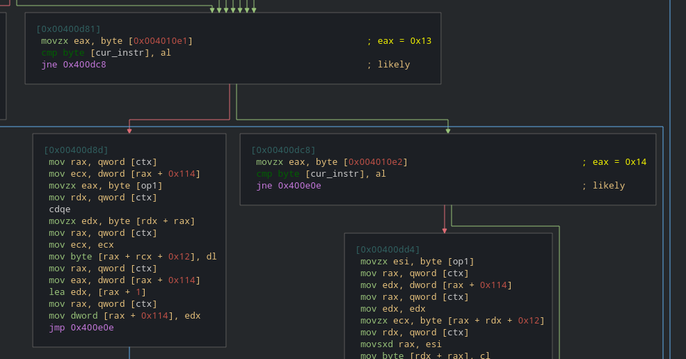 This is the most important and interesting part of reversing a vm challenge. A part where I never reached before watching that video. You can write your disassembler in any language. I’ll be using C++ here as that’s what I’m most comfortable with.
