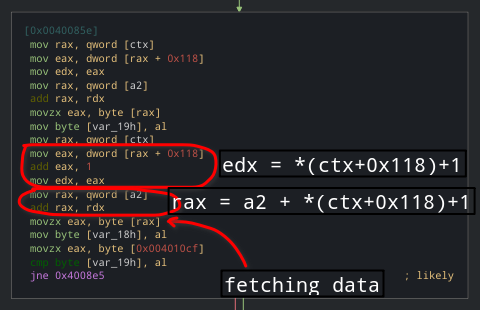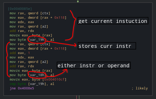 Size of this array is 16*5 + 5 = 85 bytes which is 0x55 in hex. Remember this is the third argument to dispatcher and also used in loop condition. This means this is our bytecode and a3 is the size of this bytecode. It’s completely normal if you didn’t get it in first glance (even I didn’t get it but I feel experienced individuals will see it instantly!)